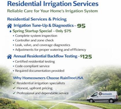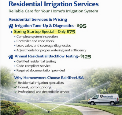RainTreeUSA is a Texas Licensed Irrigation Service and Backflow Testing company. We're committed to building a business on great customer service and satisfaction.